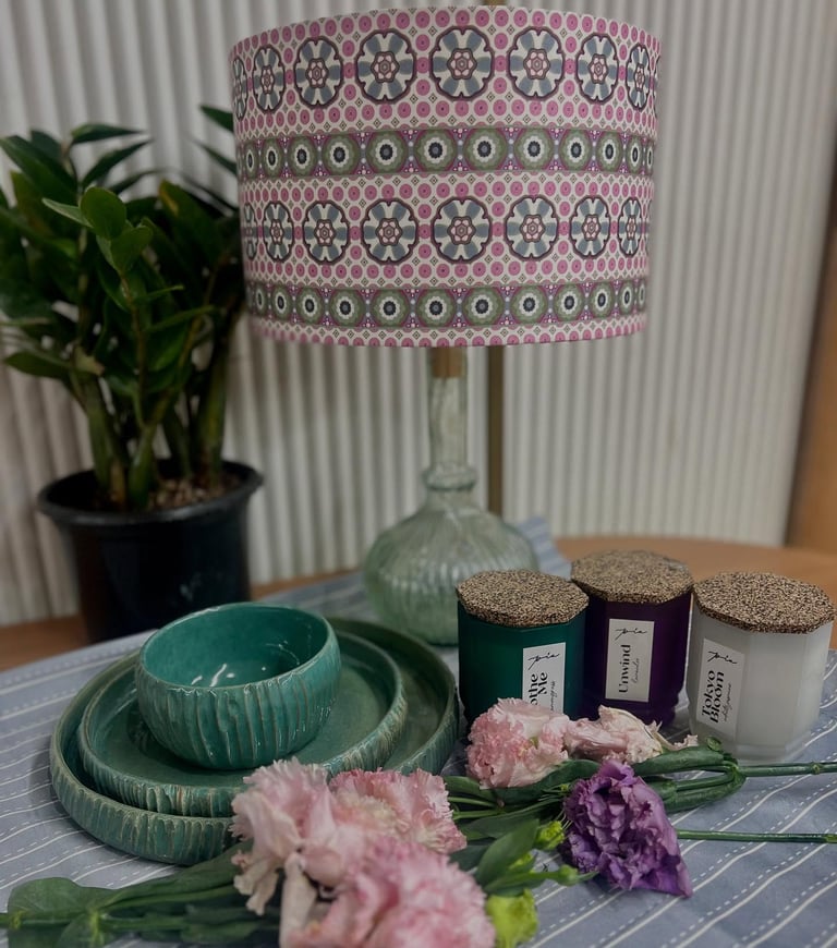 We create home fabrics, matching wallpaper, bespoke furniture, lighting, wall art, and fashion items.